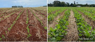 Em muitas regiões do Sul do país, o momento da colheita do trigo é um grande desafio para o agricultor, pois coincide com a etapa do plantio da soja, acarretando falta de tempo necessário para uma dessecação bem-feita, o que resulta, na grande maioria das vezes, em lavouras de soja infestadas de plantas daninhas. Muitos produtores aplicam o 2,4-D na dessecação pré-plantio da soja e precisam aguardar um período de carência de 10 a 15 dias para seguir com o plantio da oleaginosa, a depender da dosagem aplicada, do tipo de solo, dentre outros fatores agronômicos. Alguns agricultores optam por colher o trigo e semear a soja na sequência, tendo um ganho operacional de até 15 dias, porém, relatam muitas dificuldades no manejo de plantas daninhas dentro da soja, como buva, caruru, trapoeraba, corda-de-viola, leiteiro, picão-preto, cravorana e outras. As perdas são, em média, de 15% na produção de grãos, mas podem chegar a 90%, segundo a Embrapa.